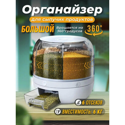 Контейнер с дозатором для круп 6 литров/Емкость для хранения/Органайзер для сыпучих продуктов/Диспенсер для продуктов/на дачу/домой/белый