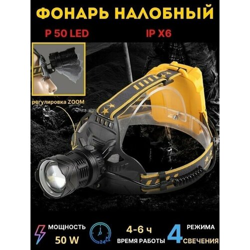 Налобный фонарь светодиодный, с регулировкой зума/zoom/влагозащитой, уровнем заряда/Аккумуляторы 18650, LED, для рыбалки, охоты