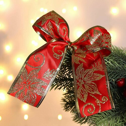 Бант новогодний на ёлку атлас 14*10 см 6 шт.