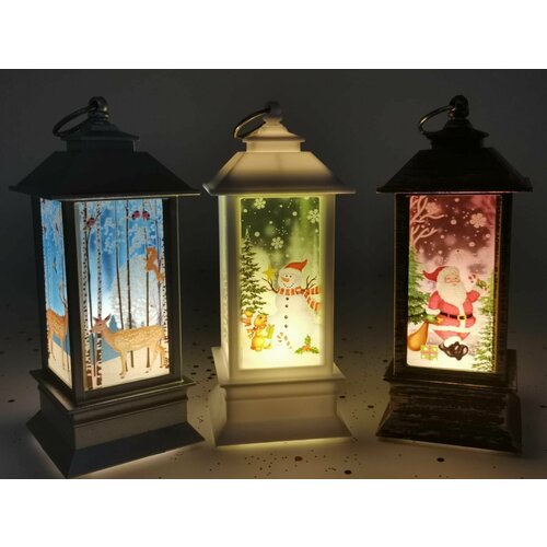 Светильник-фонарь новогодний декоративный с эффектом снега