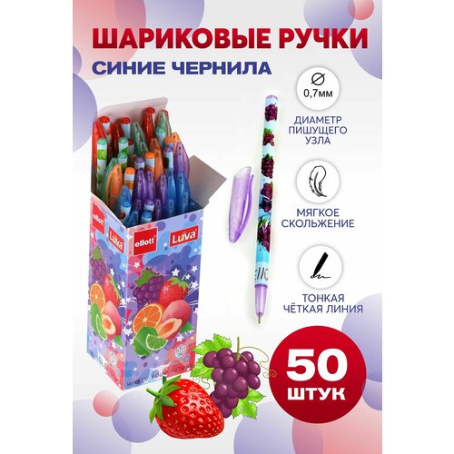 Ручки шариковые синие Ellott, набор 50 штук, толщина линия 0,7 мм