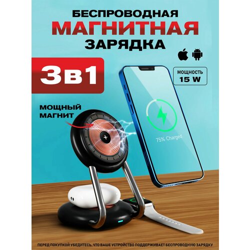 Магнитное беспроводное зарядное устройство 3 в 1 для телефона наушников и часов