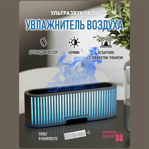Увлажнитель воздуха для дома настольный с подсветкой и эффектом пламени / Аромадиффузор электрический