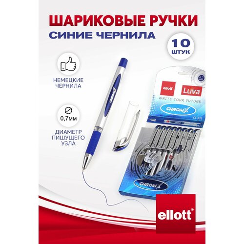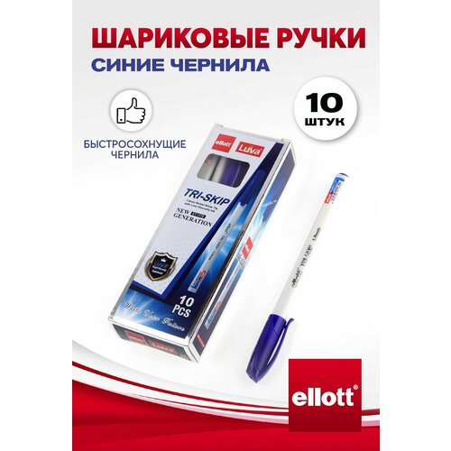 Ручки шариковые синие Ellott, набор 10 штук, толщина линии 0,7 мм
