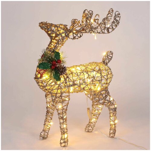 Олень светодиодный новогодняя декорация с подсветкой 30 см цвет шампанское