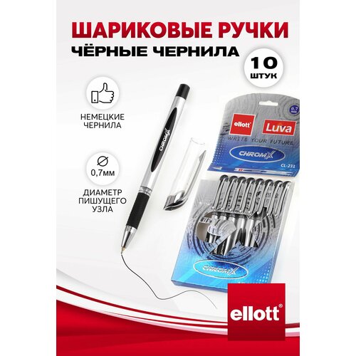 Ручки шариковые черные Ellott, набор 10 штук, толщина линии 0,7 мм