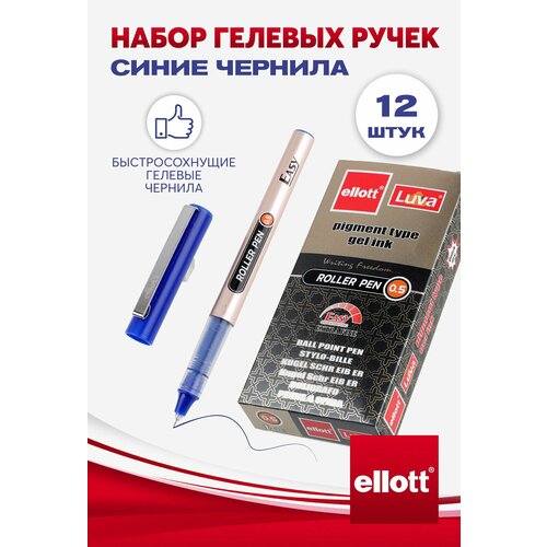 Ручки гелевые синие Ellott, набор 12 штук, толщина линии 0,5 мм