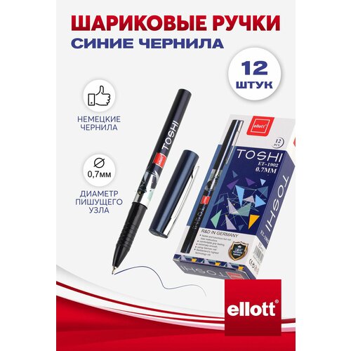 Ручки шариковые синие Ellott, набор 12 штук, толщина линия 0,7 мм