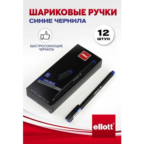 Ручки шариковые синие карбоновые Ellott, набор 12 штук, толщина линия 0,7 мм