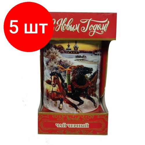 Комплект 5 штук, Чай Тройка Кружка в картоне с черным чаем 50гр арт. К2 6927 НГ23