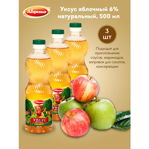 Уксус яблочный 6% "Абрико", пластиковая бутылка, 3 шт по 500 мл