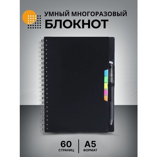 Умный многоразовый стираемый блокнот для записей на кольцах с ручкой / Скетчбук школьный для рисования / Вечный ежедневник/ Стираемый