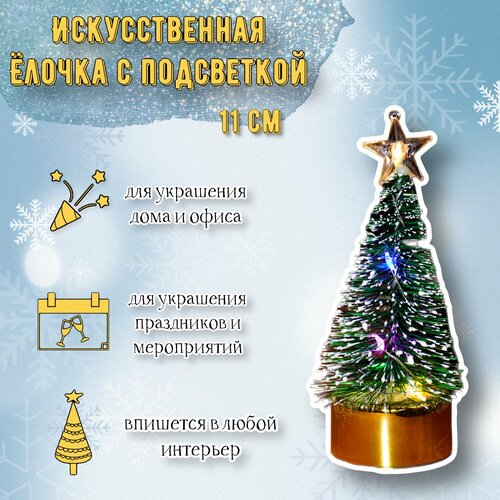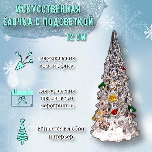 Декоративная стеклянная елочка Acssel с подсветкой 11 см