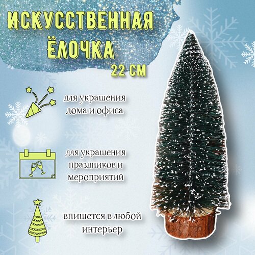 Декоративная елочка с искусственным снегом на пеньке 22 см