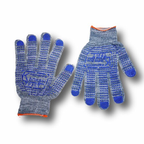 Перчатки ХБ 5 пар, вязка 10 класс, 4 нити, с ПВХ точками, серые