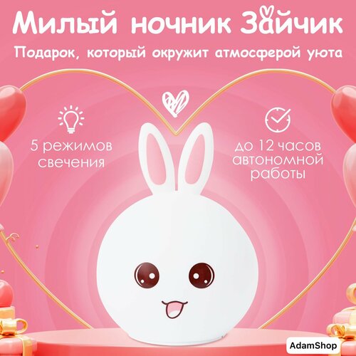 Силиконовый светильник Rabbit lamp, Детский беспроводной силиконовый светильник - ночник Заяц RGB, детский ночник