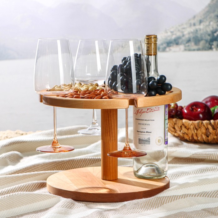 Столик-поднос для вина с менажницей Adelica, на 3 персоны, d=30?2,8 см, берёза Аксессуары для сервировки Сомелье