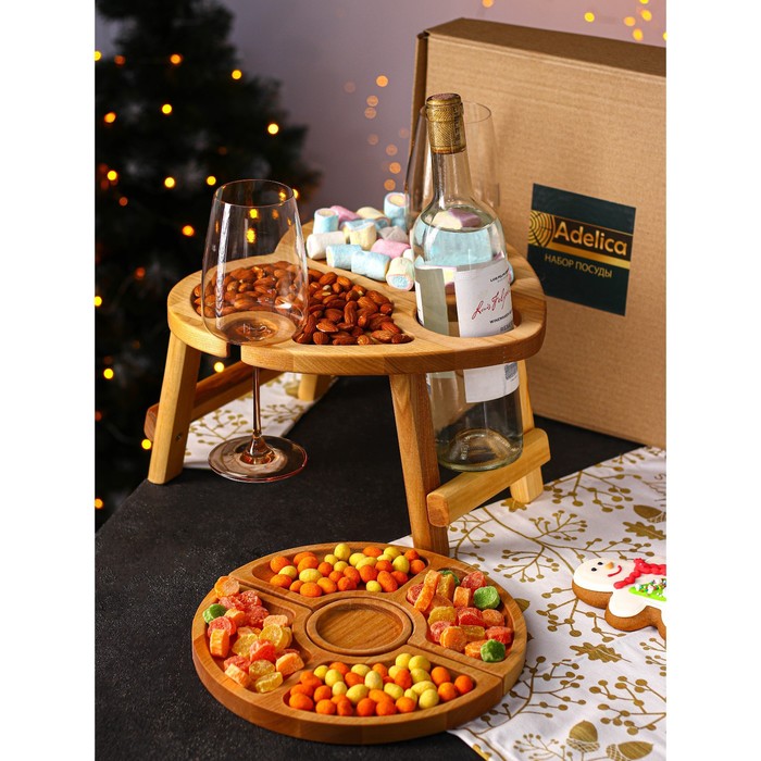Подарочный набор посуды Adelica «С любовью», столик для вина d=32 см, менажница d=25 см, п Эко подарки «Идеальная сервировка»