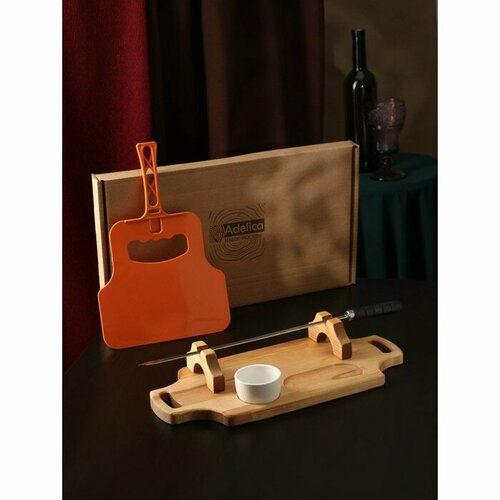 Adelica Подарочный набор для подачи шашлыка: доска-тарелка 44×24×5.5 см, шампур 3 шт, опахало, берёза