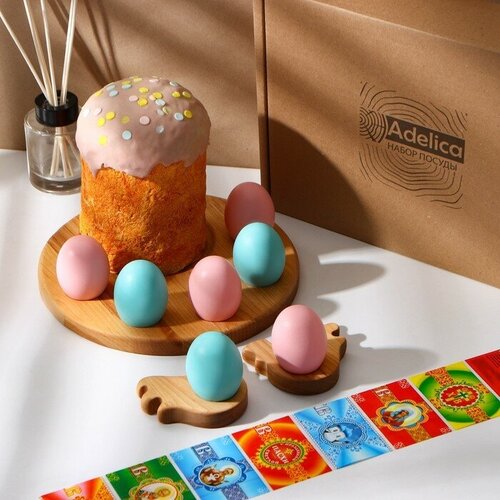 Adelica Пасхальный набор Adelica, подставка под яйцо и кулич, 2 подставки под яйцо, термонаклейки в подарок