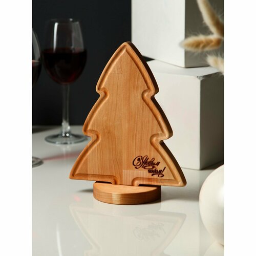 Подарочный набор деревянной посуды Adelica «Елочка», сервировочная доска на подставке 22×18 см, масло 100 мл, магнит, в подарочной коробке