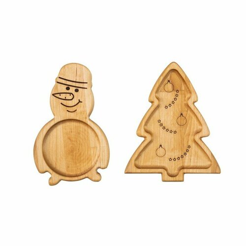 Adelica Подарочный набор деревянной посуды Adelica «С Новым годом», менажницы: снеговик 25×14 см, ёлка 25×20,5 см, магнит, в подарочной коробке