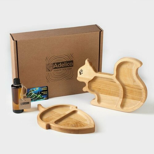 Подарочный набор деревянной посуды Adelica «Белка с орехом», менажницы: белка 25×19 см, орех 25×16 см, масло 100 мл, магнит в подарок
