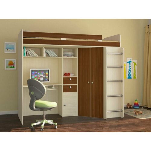 Adeta Кровать-чердак Астра дуб молочный/орех