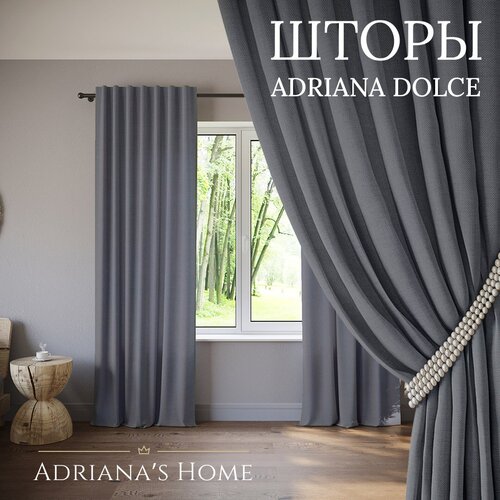 Шторы Adriana Dolce, канвас, графит, комплект из 2 штор, высота 220 см, ширина 250 см, люверсная лента