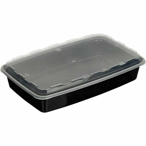 Одноразовый пластиковый контейнер Аэроснаб для вторых блюд 1300 мл черный (100 штук в упаковке)