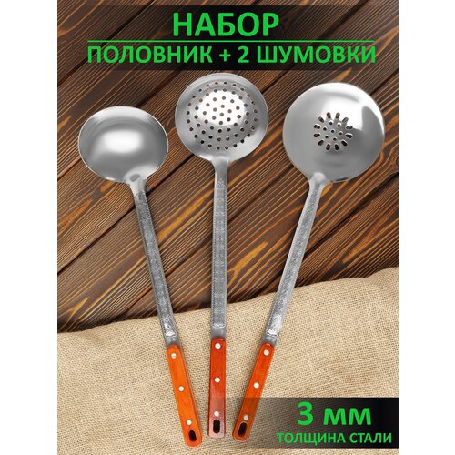 Комплект шумовка глубокая 48 см половник 48 см шумовка плоская 48 см для казана