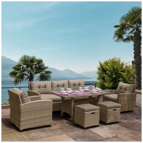 Комплект плетеной мебели Afina T365/S65/Y380B-W65 Light Brown (8+1), арт. T365/S65/Y380B-W65 8PCS Light Brown 8Pcs