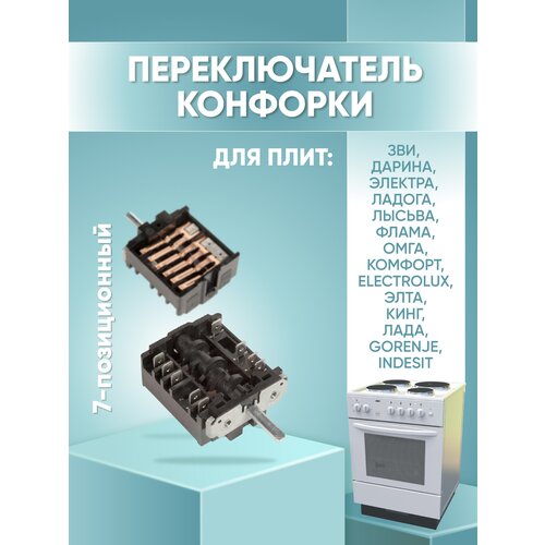 Переключатель конфорки для плит ЗВИ, нетрина, Электра, Ладога, Лысьва, Флама, Омга, Комфорт, Electrolux, Элта, Кинг, Ланет, Gorenje, Indesit, 7-позиционный