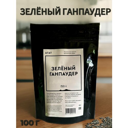 Агат Зеленый ганпаудер листовой чай, 100 г