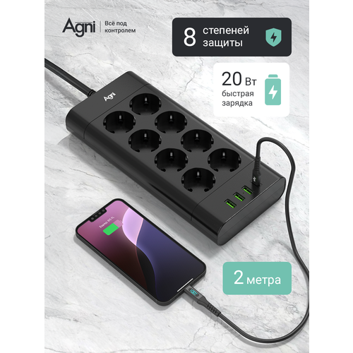 Умная розетка Wi-Fi с ваттметром и таймером AGNI 16A/4кВт совместима с Алисой и Марусей, настройка расписания, защитные шторки, защита от перезарядки