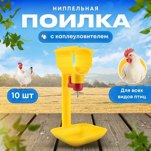 Ниппельная поилка для птиц на 360 градусов с каплеуловителем НП16 - 10 штук / Автопоилка для бройлеров, для перепелов, для цыплят Агромадана