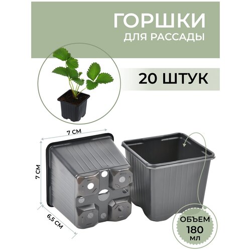 Горшок для рассады, 180 мл, 7 см × 7 см × 6.5 см, набор 20 шт, стаканы для цветов, горшочки маленькие цветочные, стаканчики пластиковые квадратные