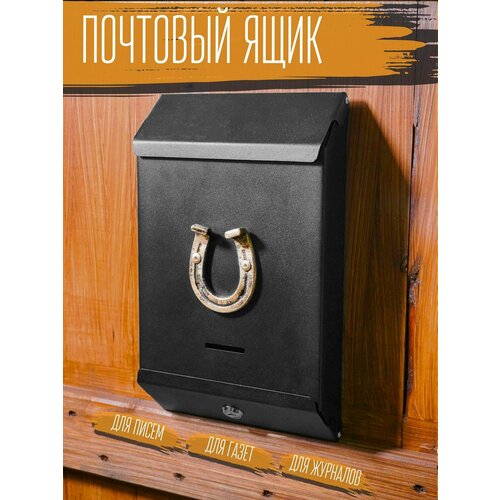 Ящик почтовый полистрой с накладкой "Подкова" (в центре)/цвет: золотой/для почты и писем/уличный ящик с ключом