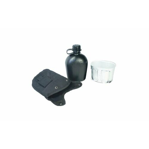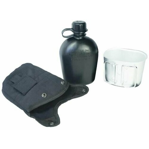Фляга армейская 1 литр (фляжка, кружка, чехол, черный)