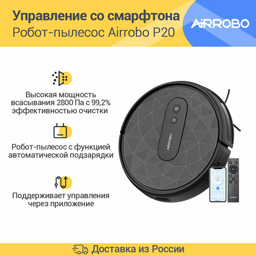 Робот пылесос Airrobo P20,0.6л,для шерсти домашних животных,черный