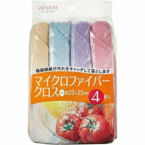 AISEN KOUGYOU Тряпочки для кухни из микрофибры (85%полиэстер+15%нейлон), 25x25 см, 4 штуки