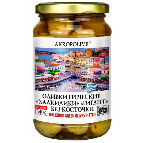 Оливки Akropolive Халкидики Гигант крупные без косточки 340 г