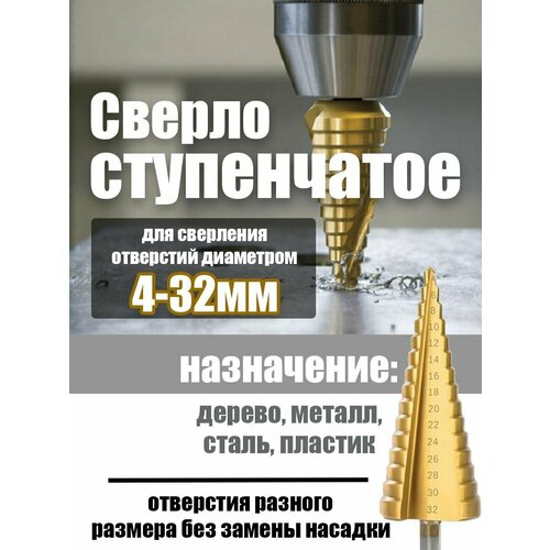 Сверло ступенчатое, конусное по металлу 4-32мм