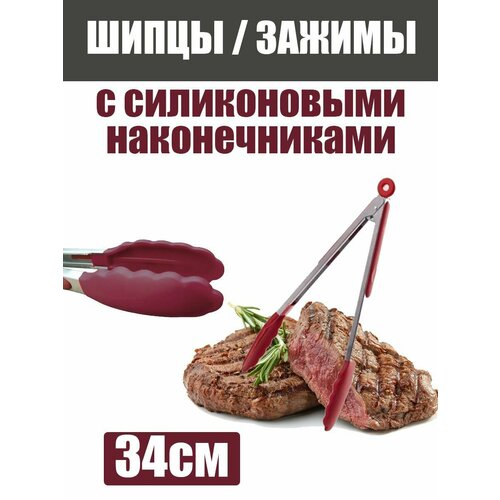 Щипцы кухонные силиконовые C12 34см, бордовые