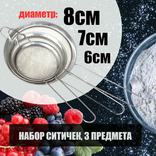 Сито/ Набор ситичек №1 из нержавеющей стали, 3 шт (диаметр 6см, 7см, 8см)