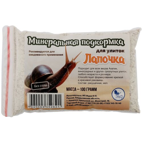 Минеральная подкормка "Лапочка" для декоративных улиток, пакет, 100 г (2 шт) АКВАКУЛИНАР