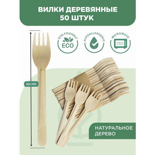 Одноразовая посуда, вилки одноразовые деревянные 165мм 50 штук
