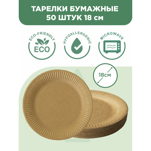 Одноразовая посуда, тарелки одноразовые бумажные крафт 18 см 50 штук