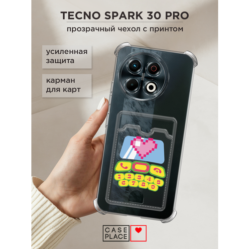 Чехол на Tecno Spark 30 Pro (Текно Спарк 30 Про) с картой и принтом Пиксельное сердечко