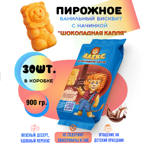 Пирожное бисквитное детское львенок Алекс, классический бисквит с шоколадной начинкой, набор 30 шт. по 30 гр.